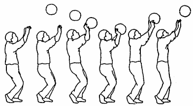 バレーボールは、高いネットをはさんでラリーを楽しむスポーツであるので、目の位置より上方のボールを空中で扱うことが多くあります。上方から落ちてくるボールを目より高い位置で手で扱う際,頭部を後屈する必要があるので頸反射が誘発され、これに抗した型で四肢を動かす動作が要求されます。ここにバレーボールの技術習得の難しさがあると考えられますが、このような反射を抑制する身体操作(頸反射に抗した型での身体操作能力=目より高い位置における「空間領域でのボール操作」)は、神経系の発達の著しい時期に身につけておく必要があると考えられます。