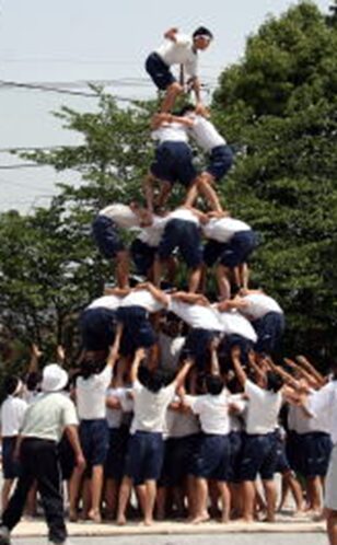以前、勤めていたK中学校で体育大会のチーフをしていた時、男子の組体操演技で「6段ピラミッド」と「5段タワー」に挑戦しました。当日はみごとに成功し、退職間近の校長先生から、「これまで見た中で一番素晴らしい組体操だった。今後、先生方もこんなみごとな組体操を見ることはないでしょう」と絶賛して頂きました。私は少し鼻を高くし、生徒たちの体育会の感想文を読んでいますと、5段タワーの一番上に乗ったS君の作文が目にとまりました。